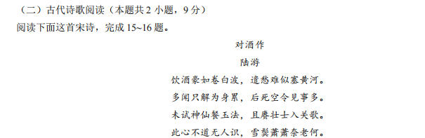 10.文中画波浪线的部分有三处需要断句,请用铅笔将答题卡上相应位置的答案标号涂黑,每涂对一处给1分,涂黑超过三处不给分。(3分)